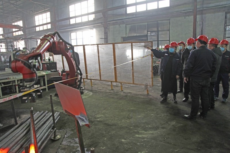 2021年1年27日丹東市常務副市長楊樹來我公司進行疫情防控及安全生產(chǎn)的調(diào)研。鳳城市市委書記李友、鳳城市長劉向東等人陪同,我公司楊鑫董事長、劉寶斌總經(jīng)理、副總經(jīng)理劉玉發(fā)、副總經(jīng)理黃成海陪同。期間在參觀過程中聽取了楊鑫董事長對企業(yè)的介紹,同時楊樹常務市長重點參觀了鍛造機械人的生產(chǎn)過程及包裝車間整個連續(xù)探傷線的生產(chǎn)過程,對企業(yè)提出了一些希望和要求。同時認為通達公司是老企業(yè),企業(yè)文化厚重,目前訂單非常飽和,更是換發(fā)了企業(yè)第二春,員工干勁空前高漲,在創(chuàng)新上活力十足,推動了先進設備制造業(yè)進一步發(fā)展。楊鑫董事長提出了政府可否在資金上給予支持,楊樹常務副市長聽取相關意見,指示相關部門回去研究,他同時也希望通達公司和政府一起努力,為鳳城的經(jīng)濟發(fā)展多做貢獻。